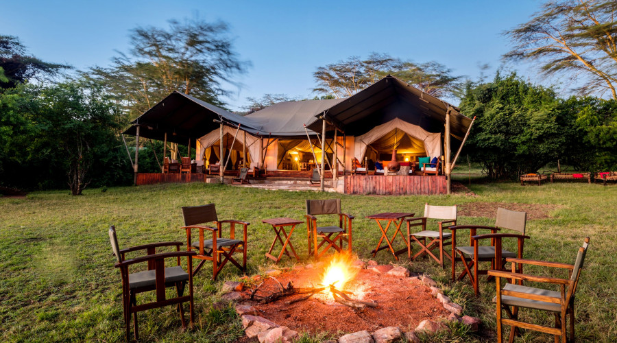 En camp in the middle of nowhere. Det tidligere hjemmet til Jamie og Kerry, eierne av Karisia Walking Safari. Kun syv telt. Du har det som plommen i egget, og fra det store svømmebassenget har du panoramautsikt til dyrene i Afrika.