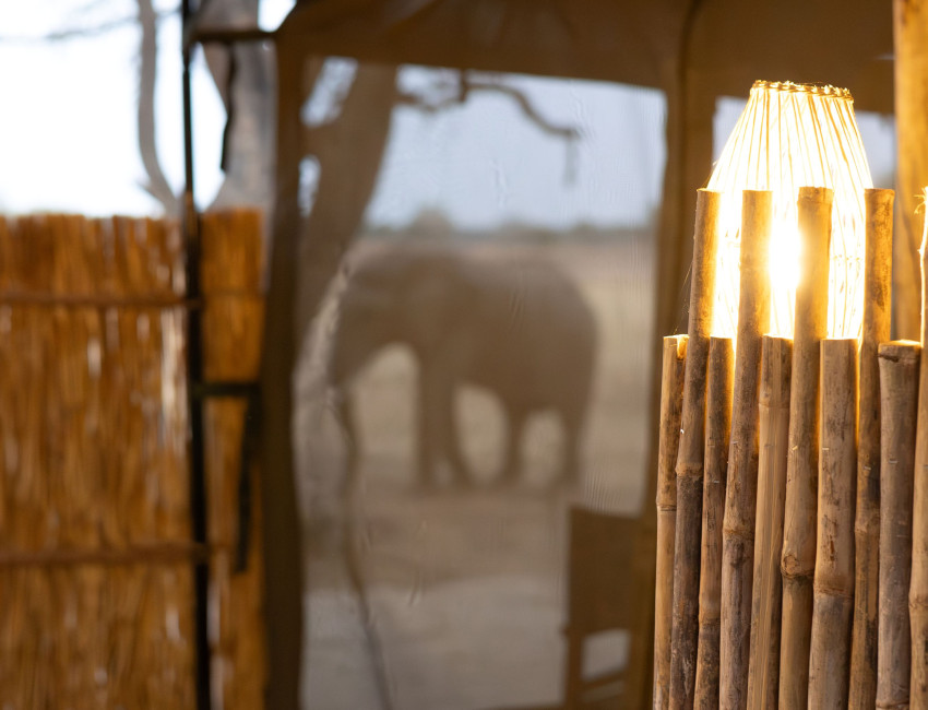 Campen er liten og intim med bare fem telt. Alle med eget bad. Hyttene er plassert i skogen langs Mwaleshi-elven – hjertet av North Luangwa nasjonalpark. Teltene er komfortable og kjølige, med alt du trenger. Dette inkluderer vannklosett og dusj i safaristil. All strømforsyning er gjennom et solcelleanlegg. Det skyggefulle hovedområdet har rikelig med overskuddsstrøm 24/7, slik at du kan holde alle enhetene dine fulladet og drikkene iskalde mens du ser ut over den dyrerike sletten foran leiren.