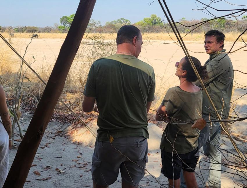 Gavin, eier og driver, tok oss med på safari til fots om morgenen. Han er genuin, ekte og ekstremt kunnskapsrik. Han ga oss eventyrlige møter med det lokale dyrelivet. Spesielt vortesvinet var en artig skrue som brøt alle regler fordi han var så tørst. Vi sto like ved han mens han slurpet i seg de livgivende dråpene.
